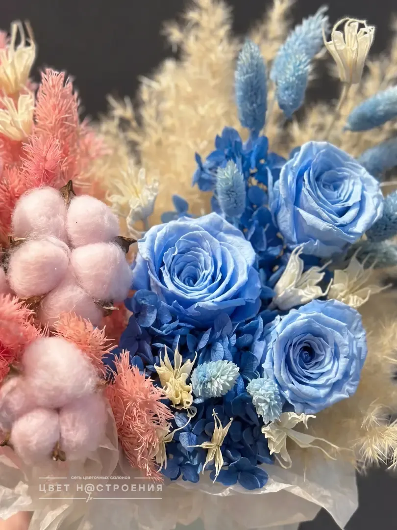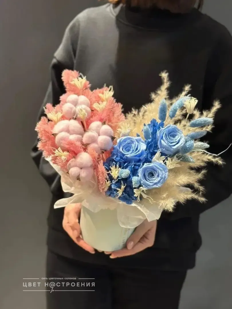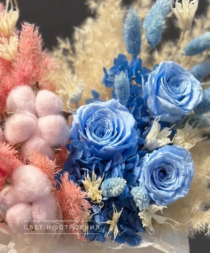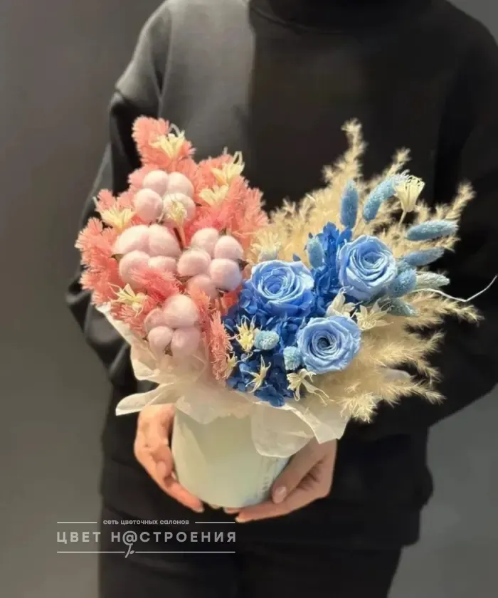 Композиция из сухоцветов «Эйфория» – это воплощение природной красоты и утонченности.
