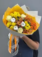 Заказывала букет коллеге в январе 2024 года.Очень шикарный получился! Большое спасибо за консультацию в выборе букета. Доставка очень помогла. Сами созвонились по времени с получателем и доставили ко времени. Отличная команда. Собрали букет по моему желанию,сами созвонились и сами все доставили! Процветания ВАМ !!!