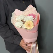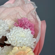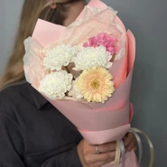 Уже несколько лет подряд заказываю в этом салоне букеты, результат неизменно радует. В этот раз выбирала букет для мамы на День рождения из четырёх вариантов, мне сотрудница салона по Whatsapp помогла сократить этот список до Зефирного - как она сказала, букет будет ароматным и интересно оформленным. Утром перед доставкой прислали фото собранного букета для подтверждения.
