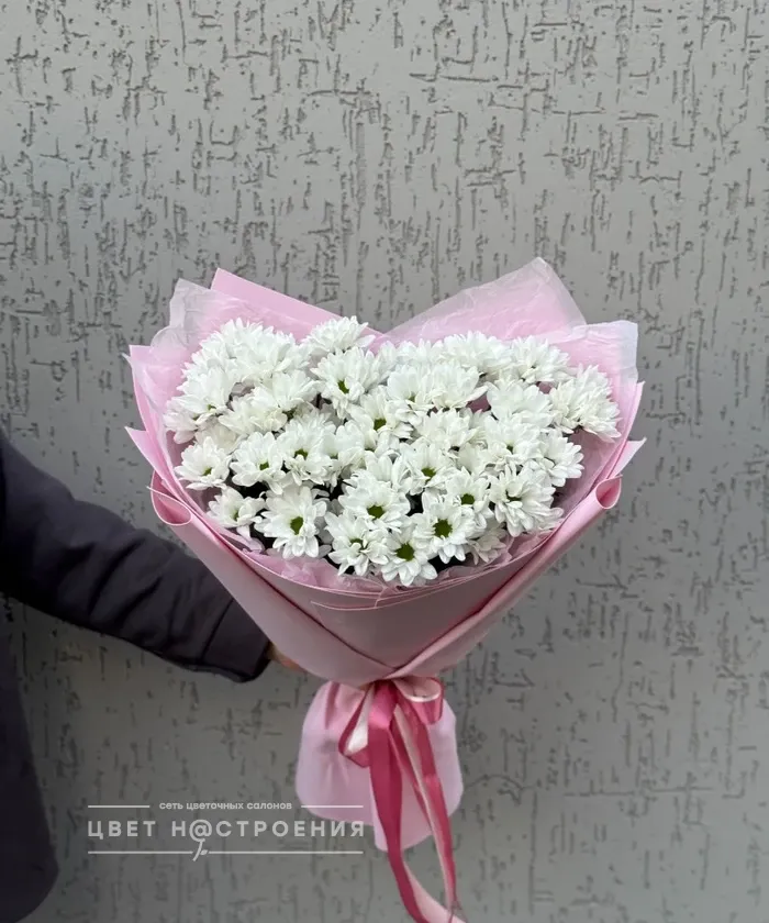 Подарите своим близким яркое настроение с букетом «Полярная звезда». В составе композиции — изящные кустовые хризантемы, создающие атмосферу тепла и уюта.
