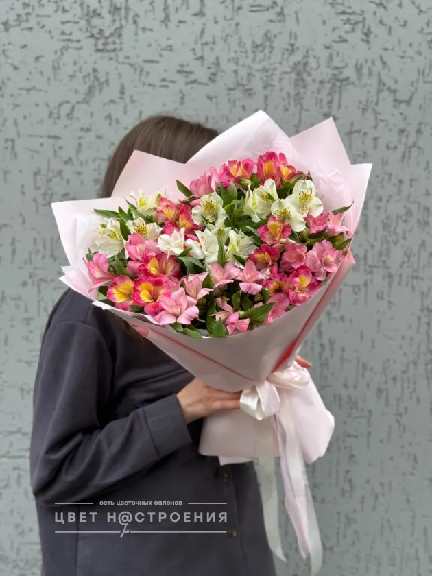 - *На фото букет из 15 альстромерий