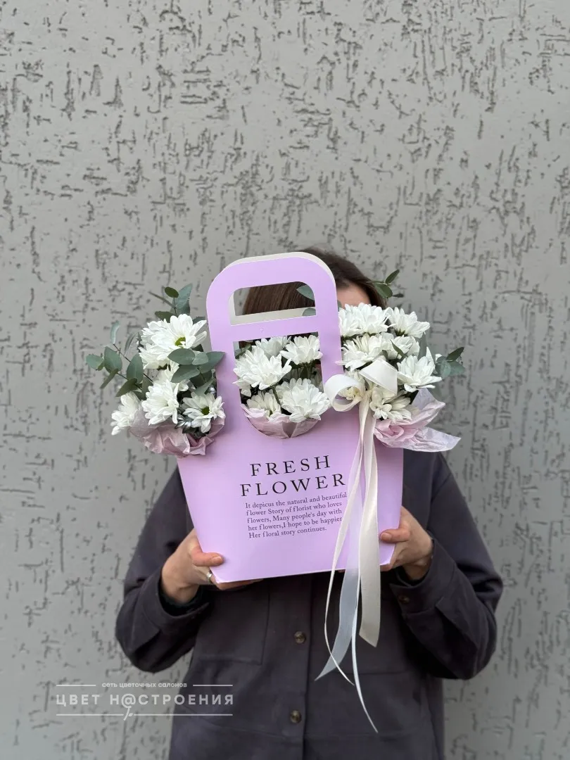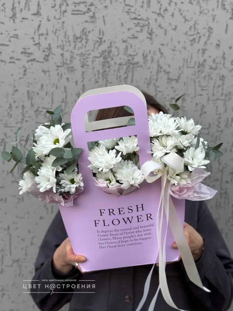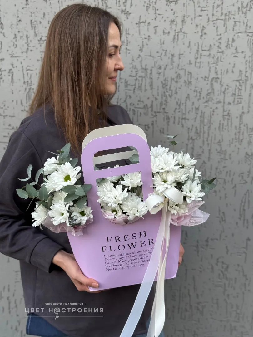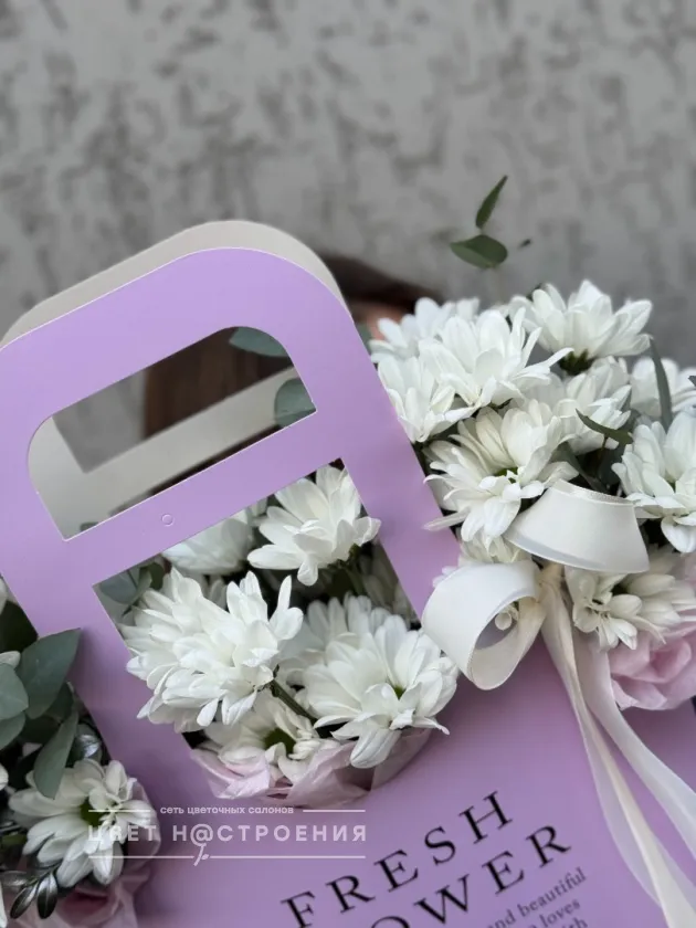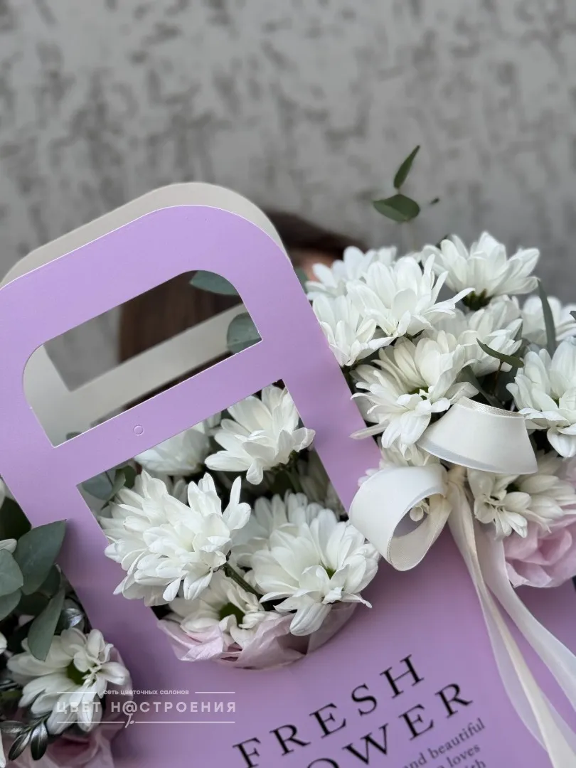 Уже несколько лет подряд заказываю в этом салоне букеты, результат неизменно радует. В этот раз выбирала букет для мамы на День рождения из четырёх вариантов, мне сотрудница салона по Whatsapp помогла сократить этот список до Зефирного - как она сказала, букет будет ароматным и интересно оформленным. Утром перед доставкой прислали фото собранного букета для подтверждения.
