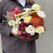 Заказывала букет коллеге в январе 2024 года.Очень шикарный получился! Большое спасибо за консультацию в выборе букета. Доставка очень помогла. Сами созвонились по времени с получателем и доставили ко времени. Отличная команда. Собрали букет по моему желанию,сами созвонились и сами все доставили! Процветания ВАМ !!!