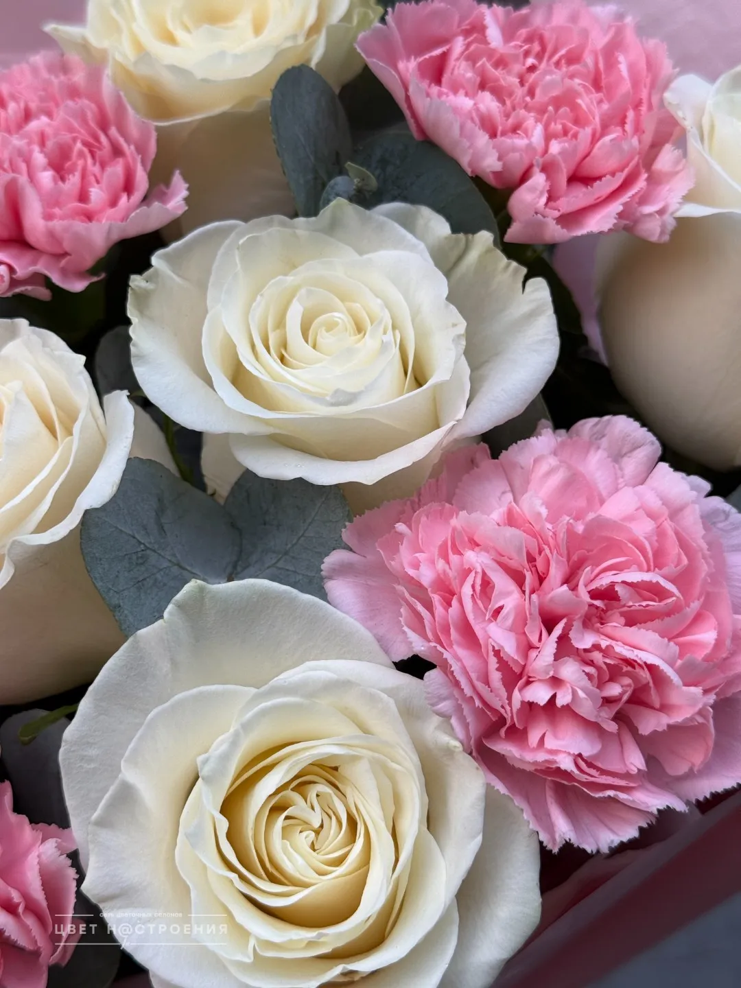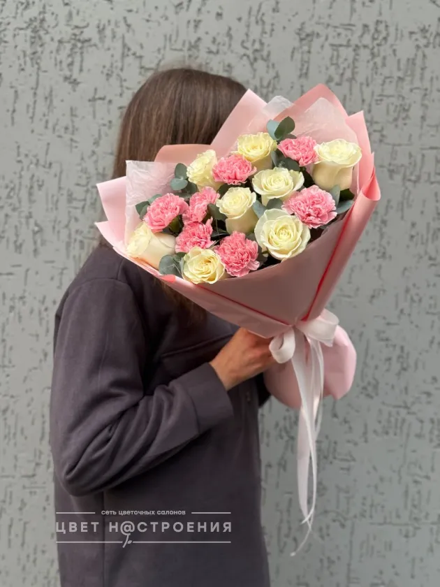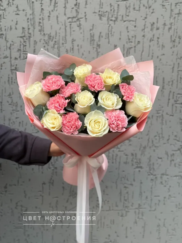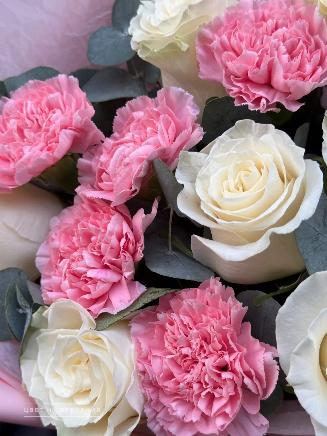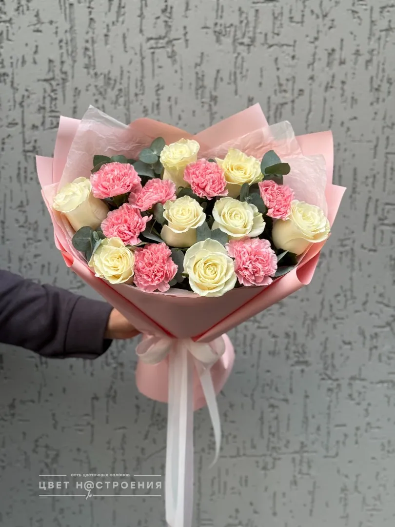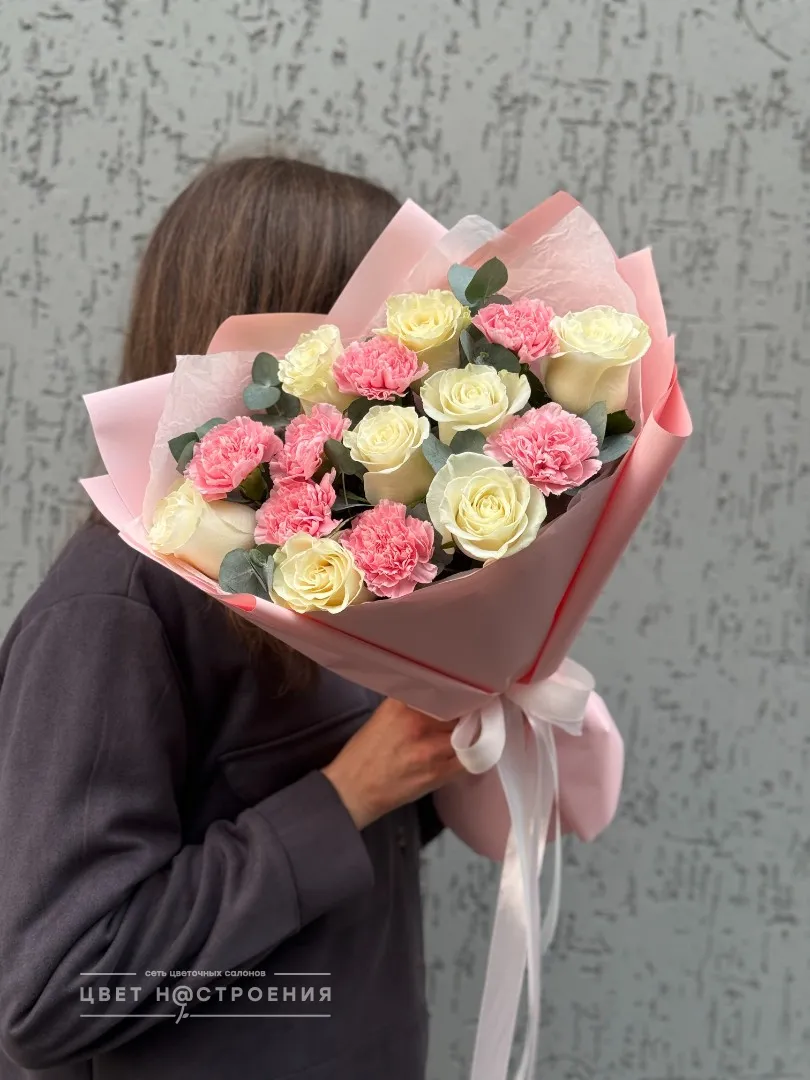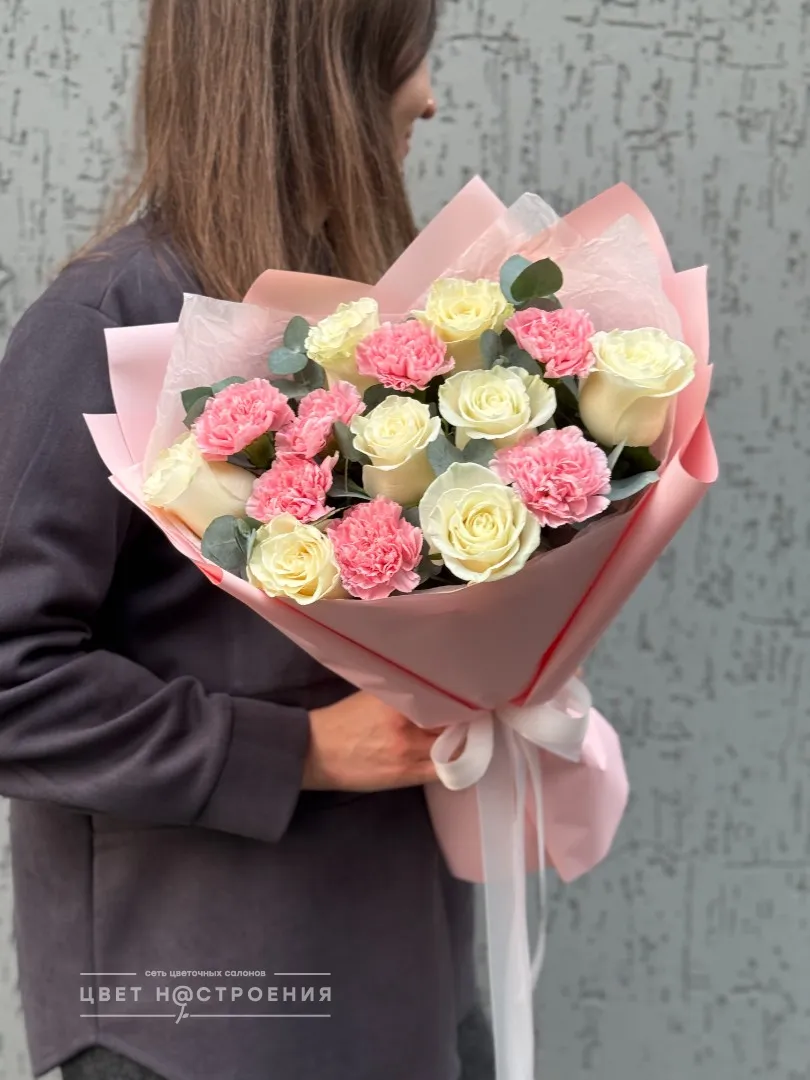 Уже несколько лет подряд заказываю в этом салоне букеты, результат неизменно радует. В этот раз выбирала букет для мамы на День рождения из четырёх вариантов, мне сотрудница салона по Whatsapp помогла сократить этот список до Зефирного - как она сказала, букет будет ароматным и интересно оформленным. Утром перед доставкой прислали фото собранного букета для подтверждения.