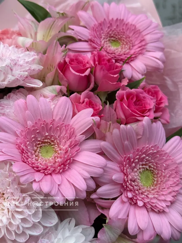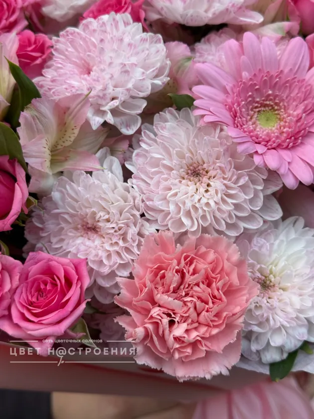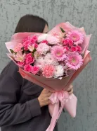 Уже несколько лет подряд заказываю в этом салоне букеты, результат неизменно радует. В этот раз выбирала букет для мамы на День рождения из четырёх вариантов, мне сотрудница салона по Whatsapp помогла сократить этот список до Зефирного - как она сказала, букет будет ароматным и интересно оформленным. Утром перед доставкой прислали фото собранного букета для подтверждения.