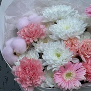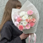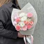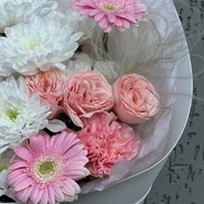 Уже несколько лет подряд заказываю в этом салоне букеты, результат неизменно радует. В этот раз выбирала букет для мамы на День рождения из четырёх вариантов, мне сотрудница салона по Whatsapp помогла сократить этот список до Зефирного - как она сказала, букет будет ароматным и интересно оформленным. Утром перед доставкой прислали фото собранного букета для подтверждения.