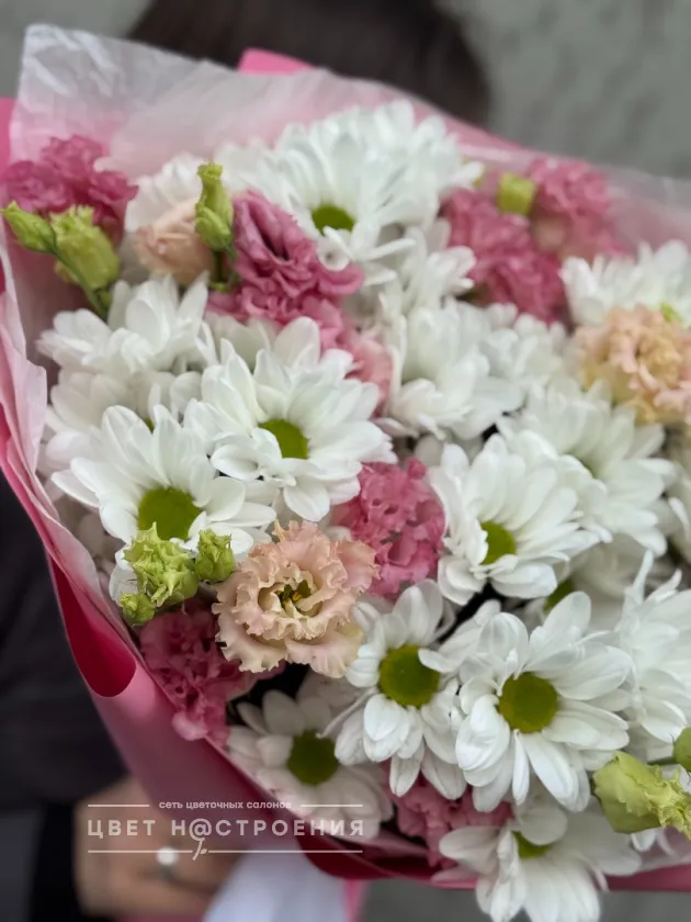 Уже несколько лет подряд заказываю в этом салоне букеты, результат неизменно радует. В этот раз выбирала букет для мамы на День рождения из четырёх вариантов, мне сотрудница салона по Whatsapp помогла сократить этот список до Зефирного - как она сказала, букет будет ароматным и интересно оформленным. Утром перед доставкой прислали фото собранного букета для подтверждения.