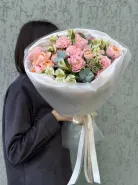 Уже несколько лет подряд заказываю в этом салоне букеты, результат неизменно радует. В этот раз выбирала букет для мамы на День рождения из четырёх вариантов, мне сотрудница салона по Whatsapp помогла сократить этот список до Зефирного - как она сказала, букет будет ароматным и интересно оформленным. Утром перед доставкой прислали фото собранного букета для подтверждения.