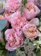 Заказала букет маме в честь повышения на работе. Собрали именно так, как хотела - нежные пионовидные розы с веточками эвкалипта. Оператор помогла подобрать цветовую гамму под интерьер маминого кабинета. Особенно порадовало, что прислали фото букета перед отправкой - выглядел даже лучше, чем я представляла. Доставили точно ко времени начала рабочего дня, мама была в восторге от такого сюрприза. Приятно, что не пришлось переживать о свежести цветов - через неделю букет все еще радует глаз.