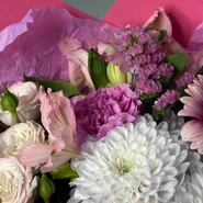 Уже несколько лет подряд заказываю в этом салоне букеты, результат неизменно радует. В этот раз выбирала букет для мамы на День рождения из четырёх вариантов, мне сотрудница салона по Whatsapp помогла сократить этот список до Зефирного - как она сказала, букет будет ароматным и интересно оформленным. Утром перед доставкой прислали фото собранного букета для подтверждения.