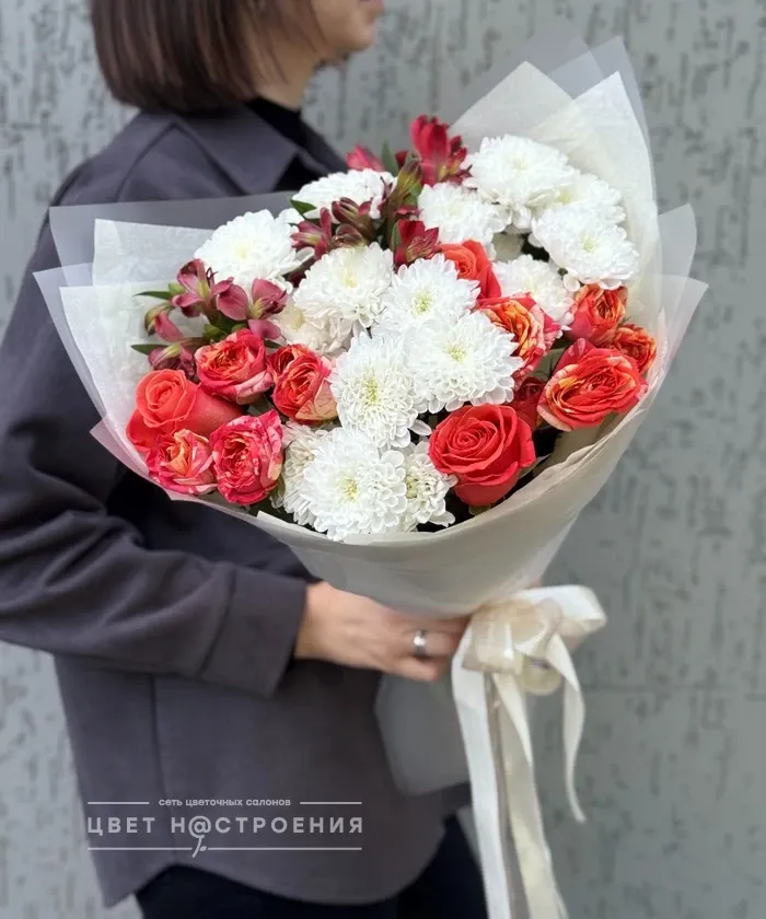 Здравствуйте , я искала букет маме, увидила в сот сетях «цвет настроения» , полистала сайт и поняла что мне сюда. Мне понравилось оформление букета, сами цветы как будто только сегодня срезали с поля. Теперь всегда буду тут заказывать.