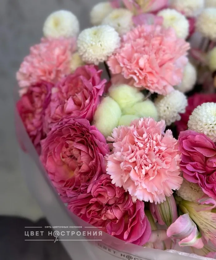 Уже несколько лет подряд заказываю в этом салоне букеты, результат неизменно радует. В этот раз выбирала букет для мамы на День рождения из четырёх вариантов, мне сотрудница салона по Whatsapp помогла сократить этот список до Зефирного - как она сказала, букет будет ароматным и интересно оформленным. Утром перед доставкой прислали фото собранного букета для подтверждения.