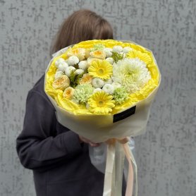 Уже несколько лет подряд заказываю в этом салоне букеты, результат неизменно радует. В этот раз выбирала букет для мамы на День рождения из четырёх вариантов, мне сотрудница салона по Whatsapp помогла сократить этот список до Зефирного - как она сказала, букет будет ароматным и интересно оформленным. Утром перед доставкой прислали фото собранного букета для подтверждения.