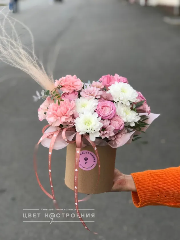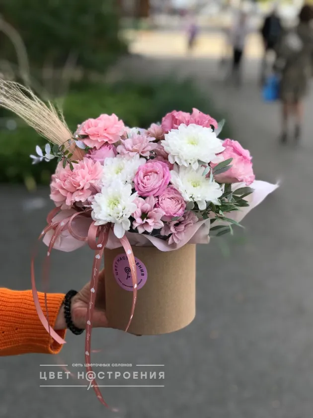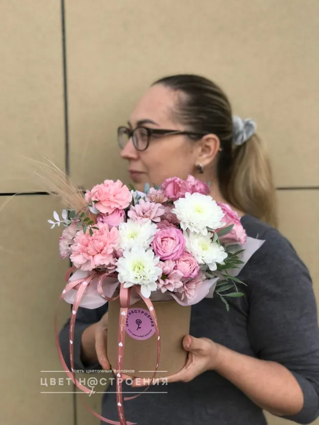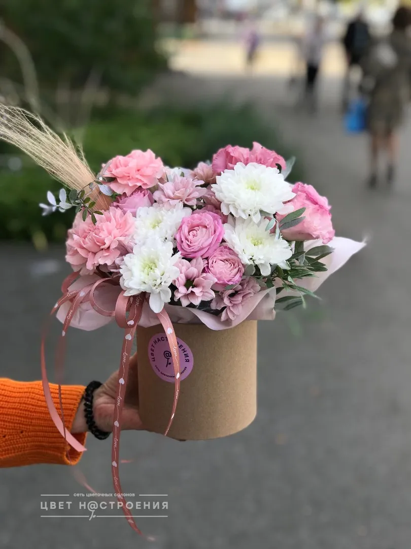 Уже несколько лет подряд заказываю в этом салоне букеты, результат неизменно радует. В этот раз выбирала букет для мамы на День рождения из четырёх вариантов, мне сотрудница салона по Whatsapp помогла сократить этот список до Зефирного - как она сказала, букет будет ароматным и интересно оформленным. Утром перед доставкой прислали фото собранного букета для подтверждения.