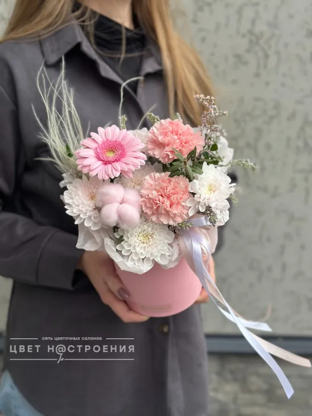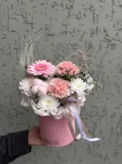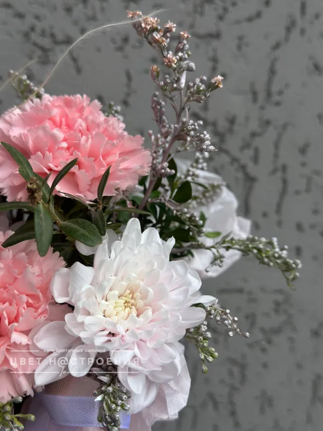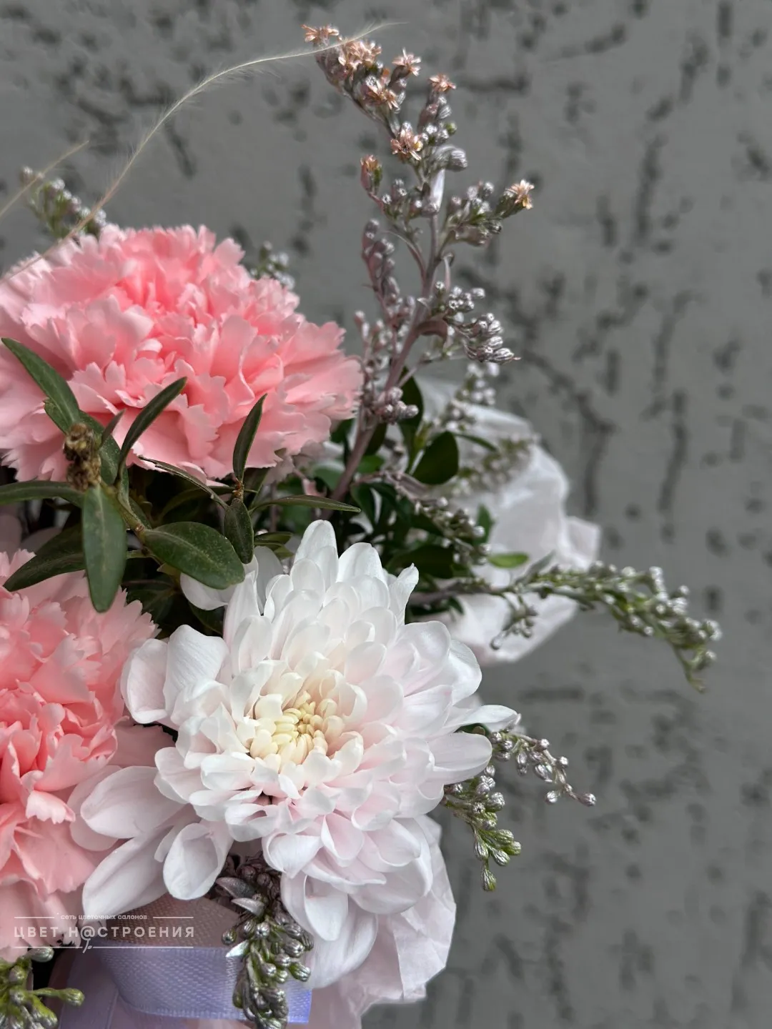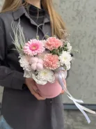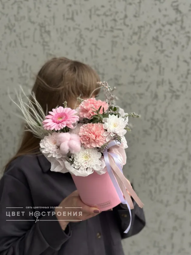 Уже несколько лет подряд заказываю в этом салоне букеты, результат неизменно радует. В этот раз выбирала букет для мамы на День рождения из четырёх вариантов, мне сотрудница салона по Whatsapp помогла сократить этот список до Зефирного - как она сказала, букет будет ароматным и интересно оформленным. Утром перед доставкой прислали фото собранного букета для подтверждения.