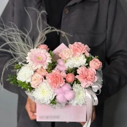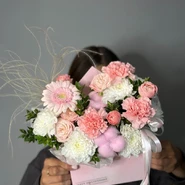 Уже несколько лет подряд заказываю в этом салоне букеты, результат неизменно радует. В этот раз выбирала букет для мамы на День рождения из четырёх вариантов, мне сотрудница салона по Whatsapp помогла сократить этот список до Зефирного - как она сказала, букет будет ароматным и интересно оформленным. Утром перед доставкой прислали фото собранного букета для подтверждения.