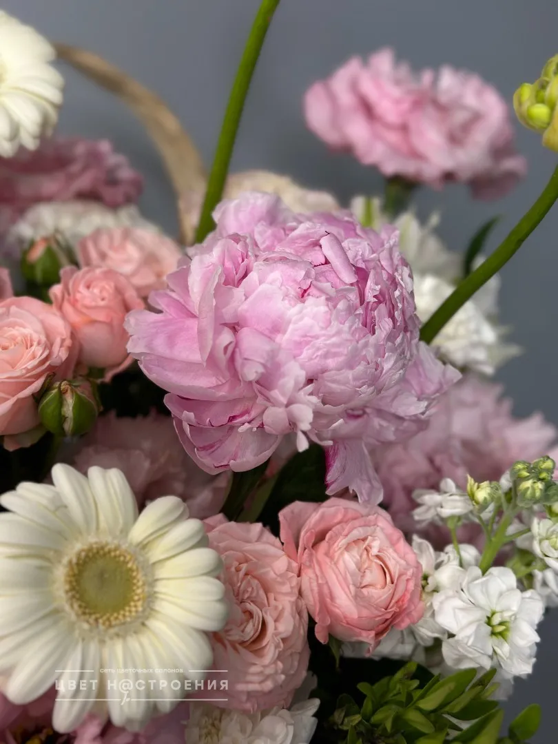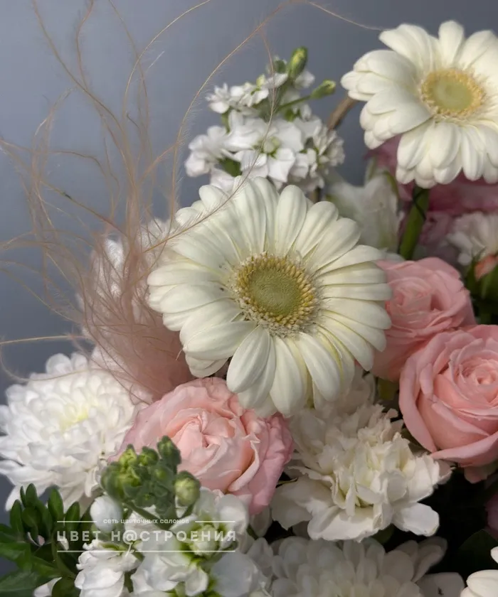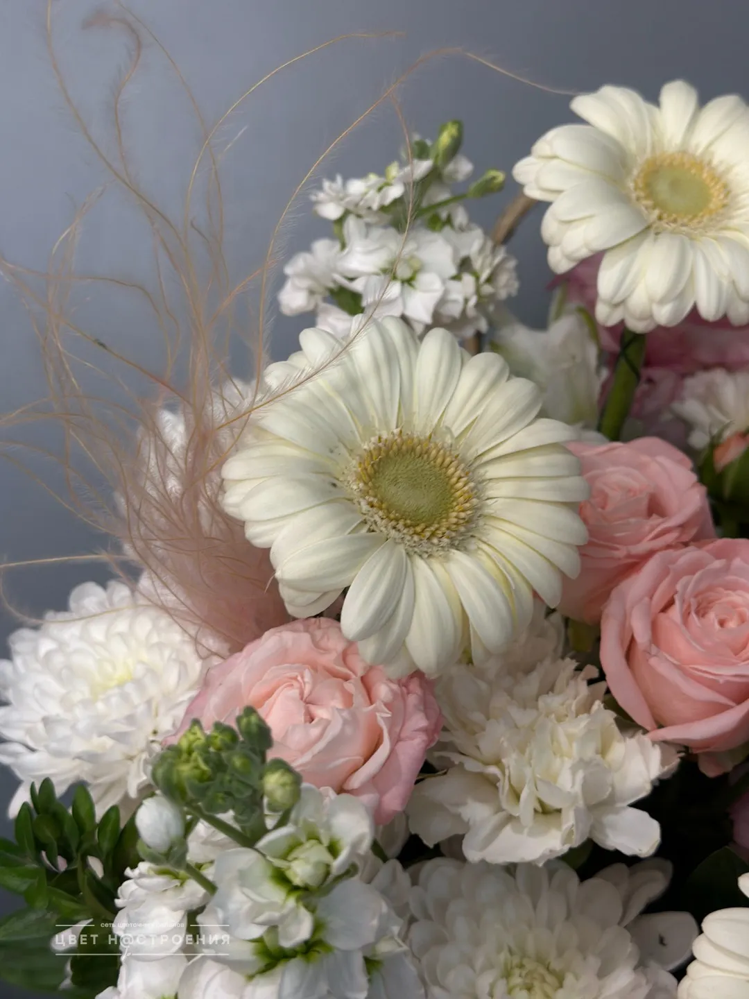 Уже несколько лет подряд заказываю в этом салоне букеты, результат неизменно радует. В этот раз выбирала букет для мамы на День рождения из четырёх вариантов, мне сотрудница салона по Whatsapp помогла сократить этот список до Зефирного - как она сказала, букет будет ароматным и интересно оформленным. Утром перед доставкой прислали фото собранного букета для подтверждения.