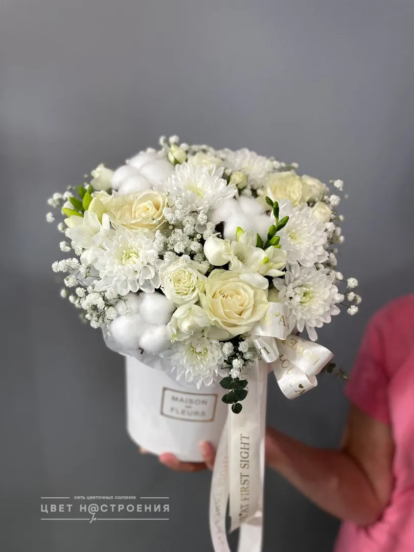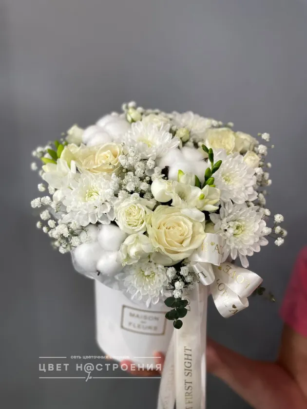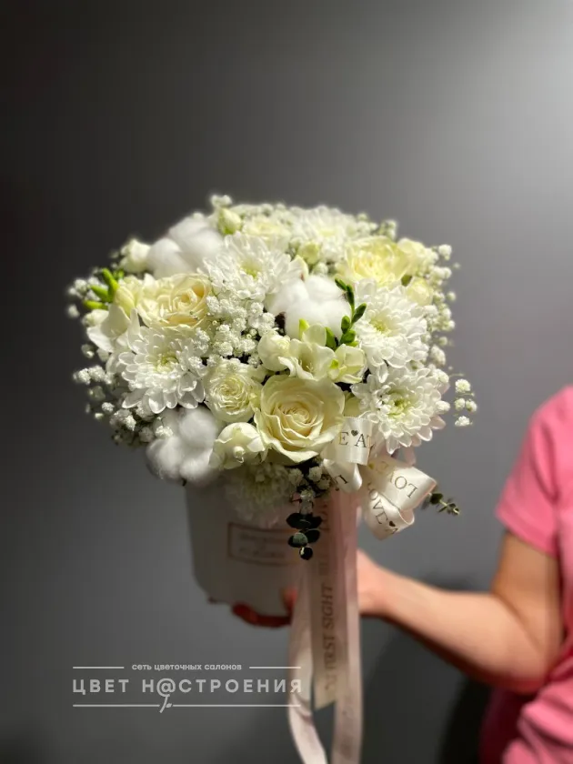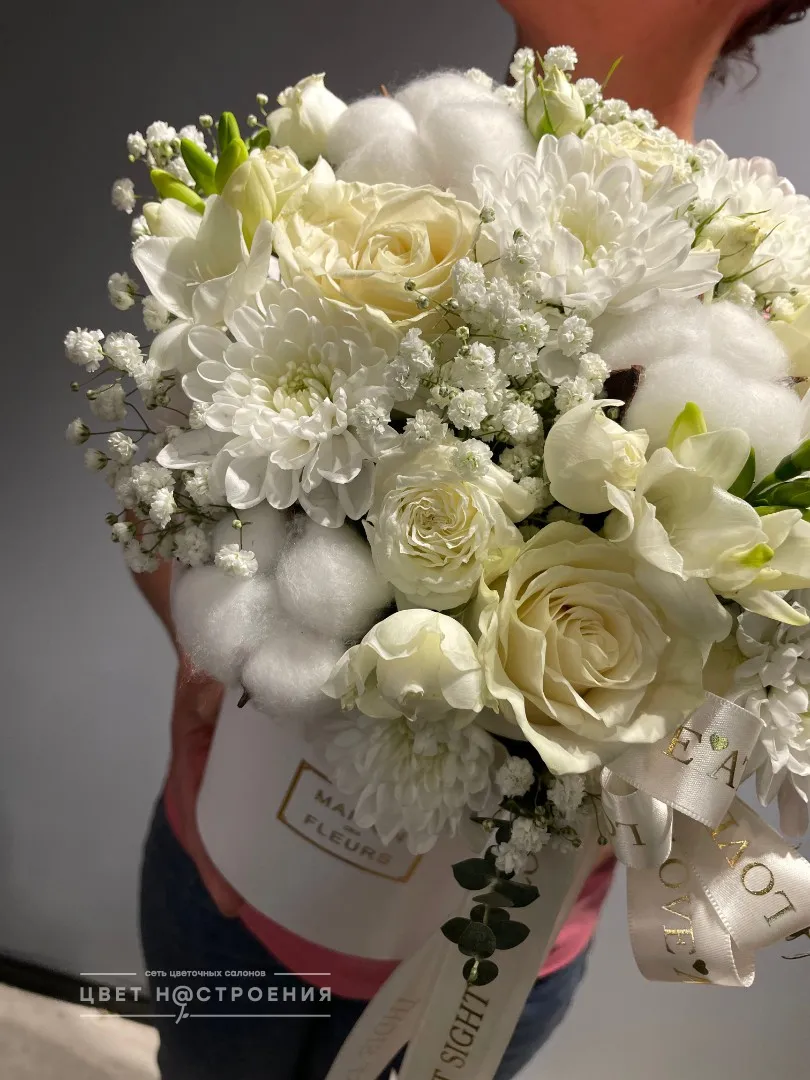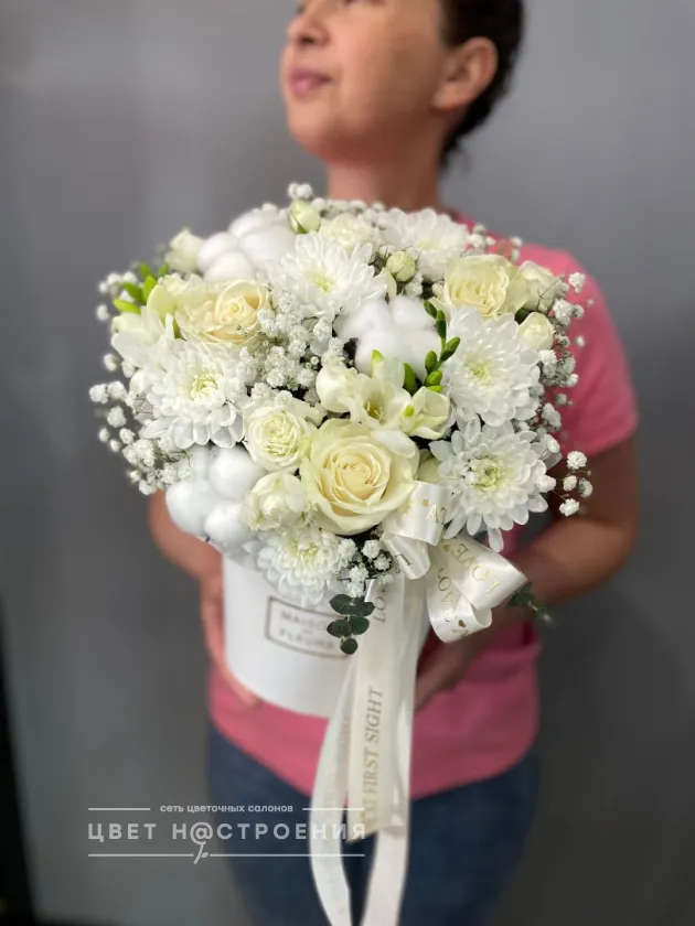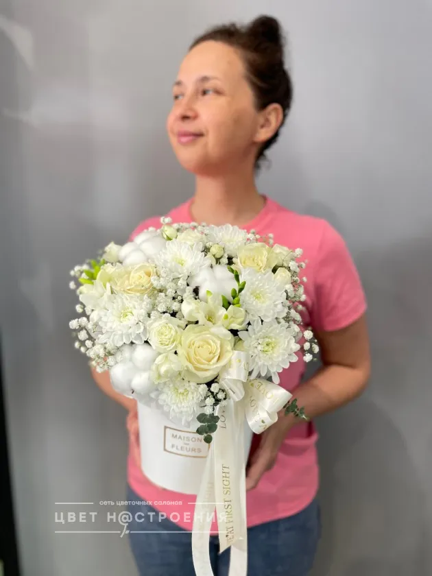 Уже несколько лет подряд заказываю в этом салоне букеты, результат неизменно радует. В этот раз выбирала букет для мамы на День рождения из четырёх вариантов, мне сотрудница салона по Whatsapp помогла сократить этот список до Зефирного - как она сказала, букет будет ароматным и интересно оформленным. Утром перед доставкой прислали фото собранного букета для подтверждения.