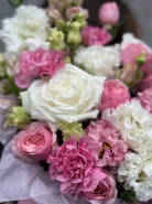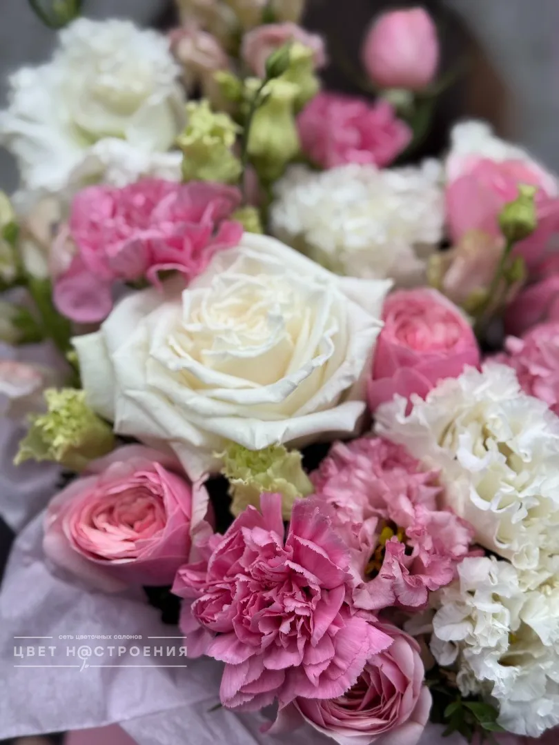 Уже несколько лет подряд заказываю в этом салоне букеты, результат неизменно радует. В этот раз выбирала букет для мамы на День рождения из четырёх вариантов, мне сотрудница салона по Whatsapp помогла сократить этот список до Зефирного - как она сказала, букет будет ароматным и интересно оформленным. Утром перед доставкой прислали фото собранного букета для подтверждения.