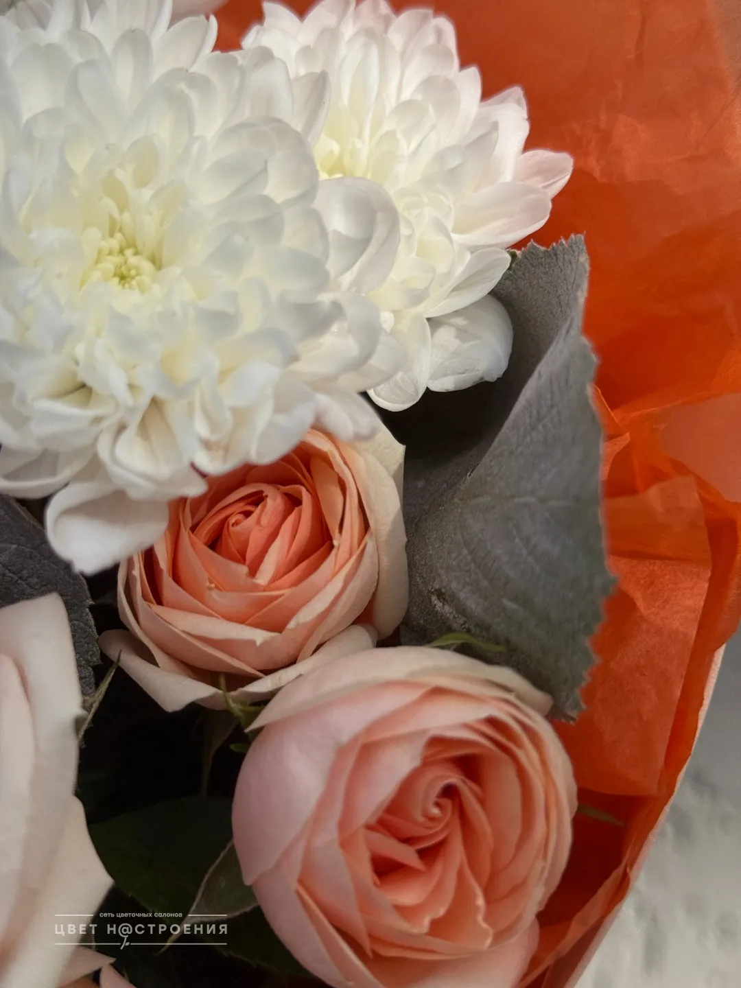 Уже несколько лет подряд заказываю в этом салоне букеты, результат неизменно радует. В этот раз выбирала букет для мамы на День рождения из четырёх вариантов, мне сотрудница салона по Whatsapp помогла сократить этот список до Зефирного - как она сказала, букет будет ароматным и интересно оформленным. Утром перед доставкой прислали фото собранного букета для подтверждения.