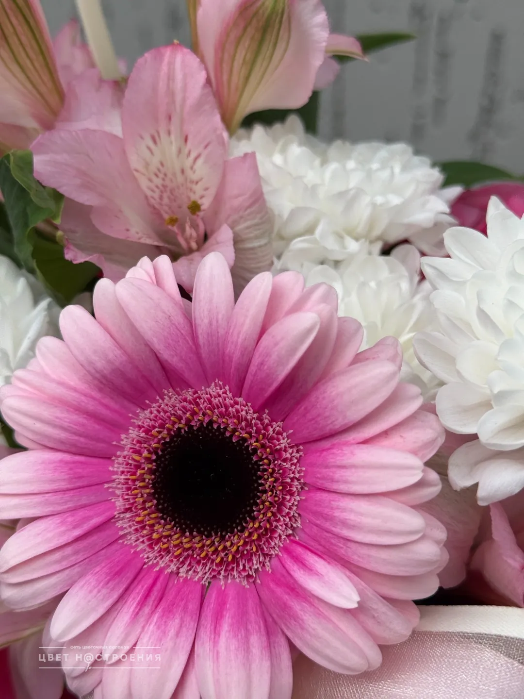 Уже несколько лет подряд заказываю в этом салоне букеты, результат неизменно радует. В этот раз выбирала букет для мамы на День рождения из четырёх вариантов, мне сотрудница салона по Whatsapp помогла сократить этот список до Зефирного - как она сказала, букет будет ароматным и интересно оформленным. Утром перед доставкой прислали фото собранного букета для подтверждения.