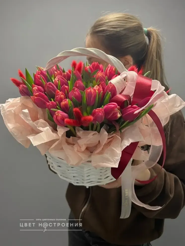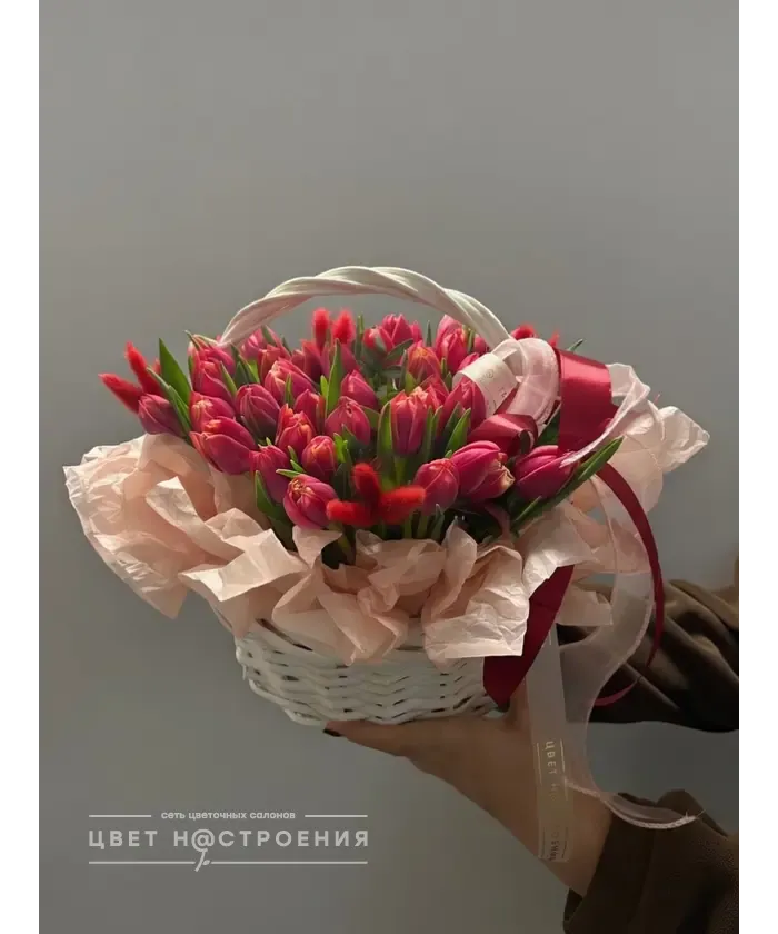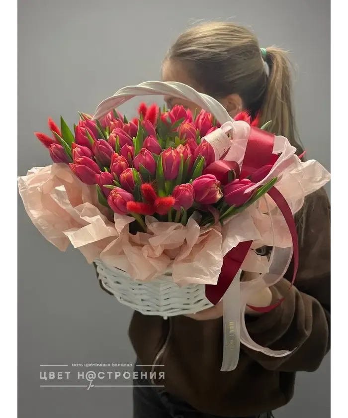 «Дыхание весны» корзина с тюльпанами