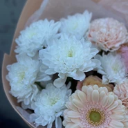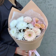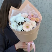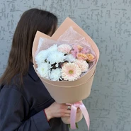 Уже несколько лет подряд заказываю в этом салоне букеты, результат неизменно радует. В этот раз выбирала букет для мамы на День рождения из четырёх вариантов, мне сотрудница салона по Whatsapp помогла сократить этот список до Зефирного - как она сказала, букет будет ароматным и интересно оформленным. Утром перед доставкой прислали фото собранного букета для подтверждения.