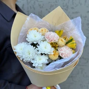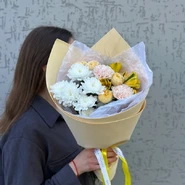Уже несколько лет подряд заказываю в этом салоне букеты, результат неизменно радует. В этот раз выбирала букет для мамы на День рождения из четырёх вариантов, мне сотрудница салона по Whatsapp помогла сократить этот список до Зефирного - как она сказала, букет будет ароматным и интересно оформленным. Утром перед доставкой прислали фото собранного букета для подтверждения.