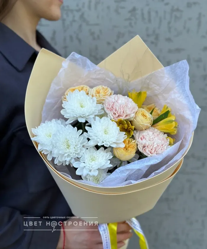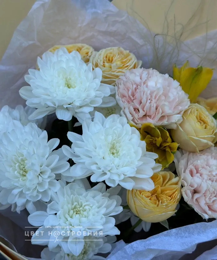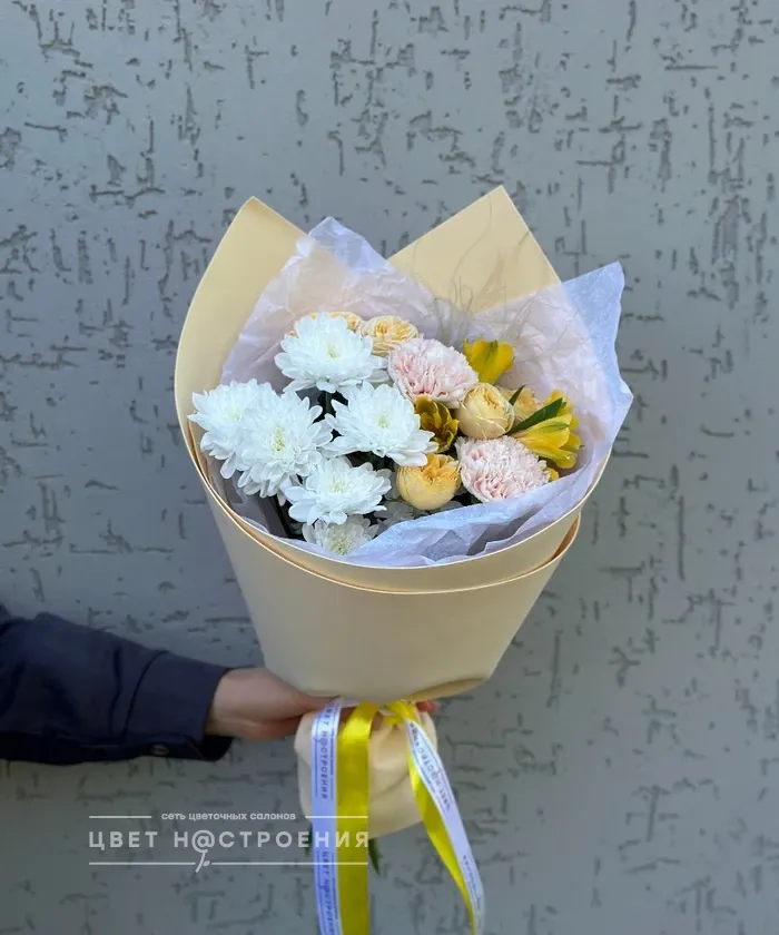 Здравствуйте , я искала букет маме, увидила в сот сетях «цвет настроения» , полистала сайт и поняла что мне сюда. Мне понравилось оформление букета, сами цветы как будто только сегодня срезали с поля. Теперь всегда буду тут заказывать.