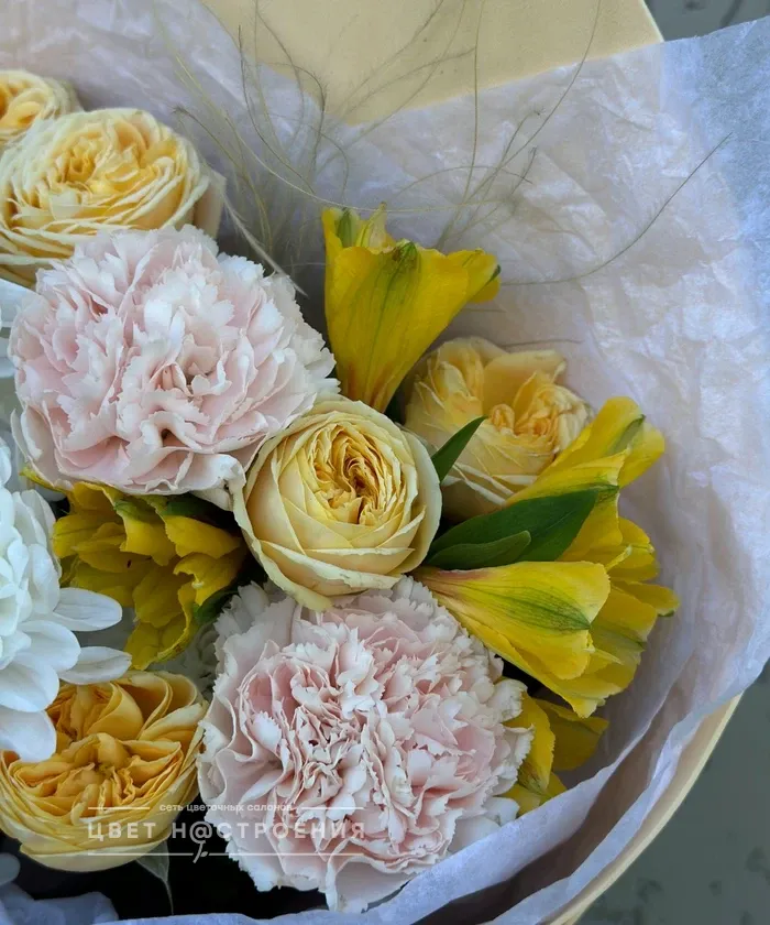 Букет привезли вовремя, проблем с доставкой не было. Цветы ароматные и свежие, букет очень красивый.