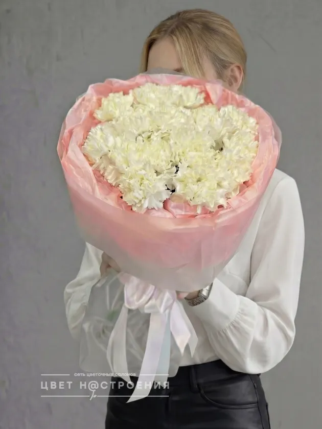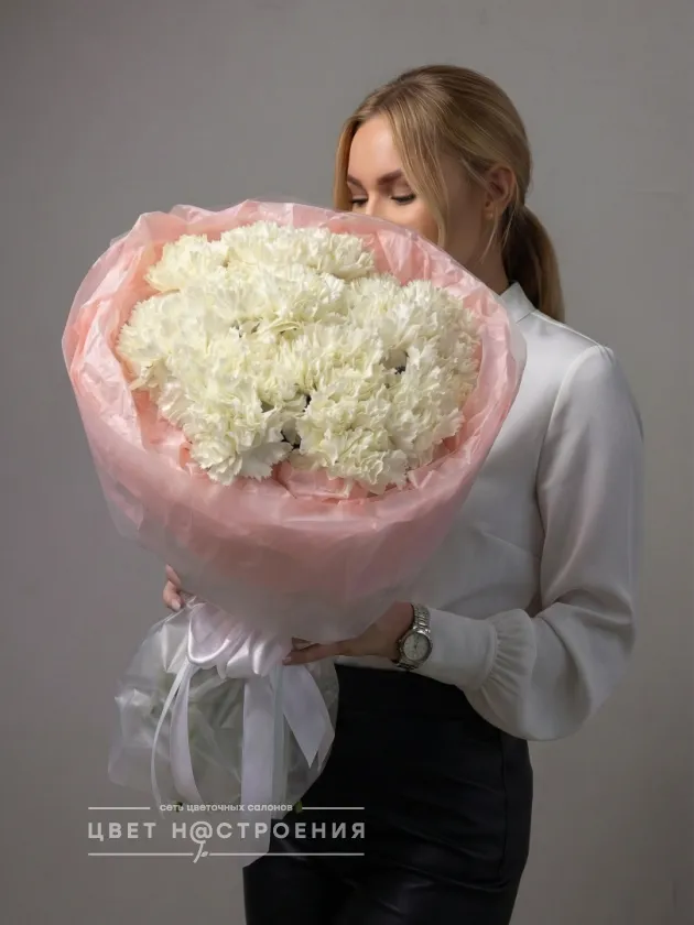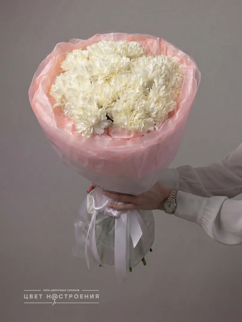 Букет «Нежное облако» из белых диантусов выглядит одновременно легким и элегантным, словно облако в ясное небо. Эти изящные цветы создают атмосферу чистоты и изящества, идеально подчёркивая гармонию и свежесть. Такой букет станет прекрасным подарком для тех, кто ценит деликатность и стиль.