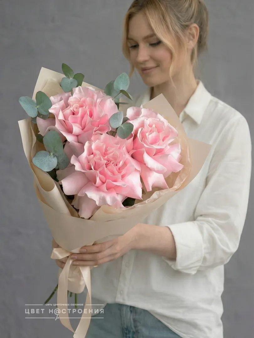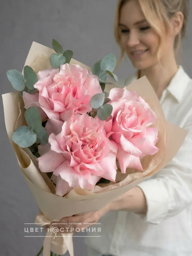 Букет Пудра — изысканное сочетание французской розы и эвкалипта, создающее нежную и романтичную атмосферу. Каждый букет поставляется в элегантной упаковке, дополненной стильной лентой. Этот букет идеально подойдет для подарка или украшения интерьера. Его утончённый дизайн подчеркнёт ваш вкус и идею красоты.