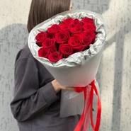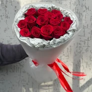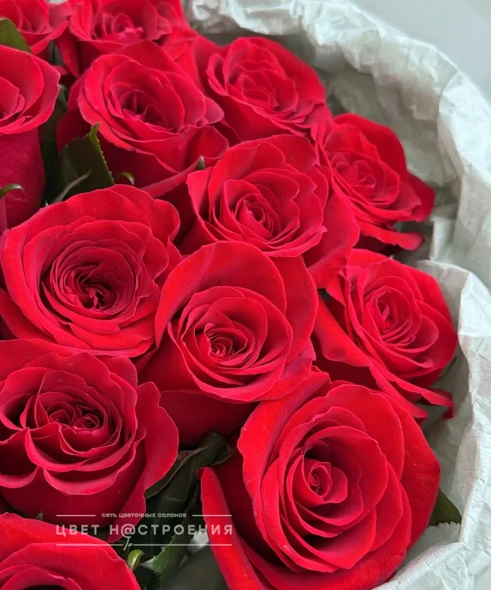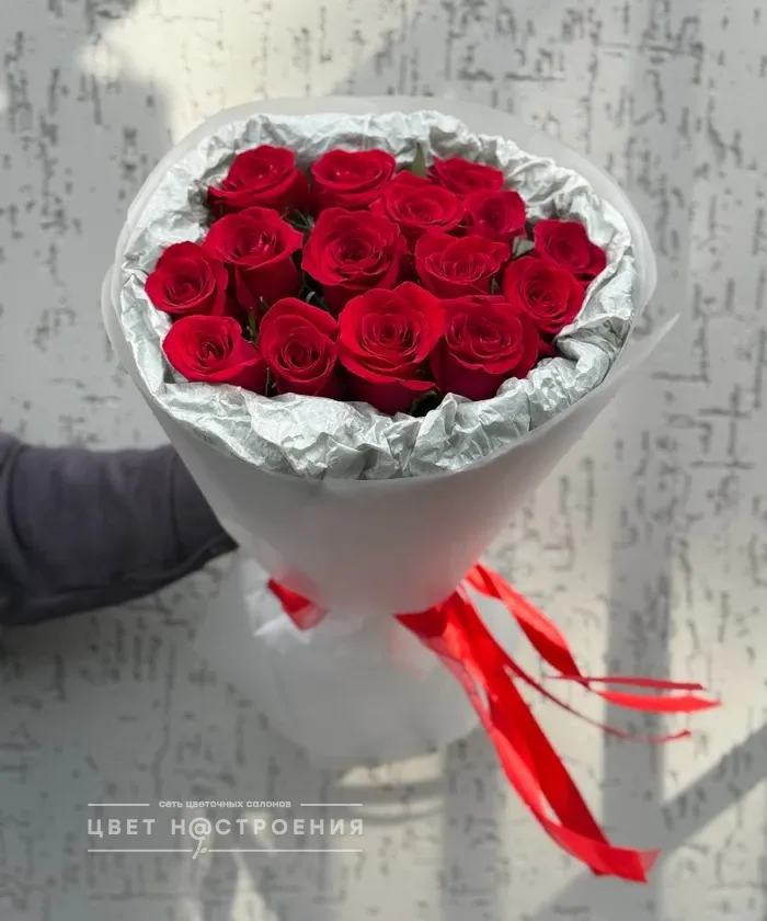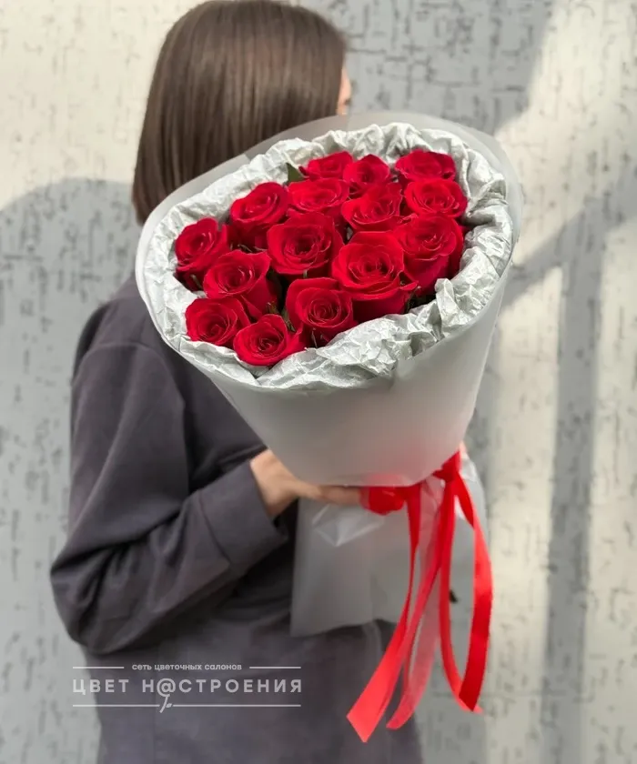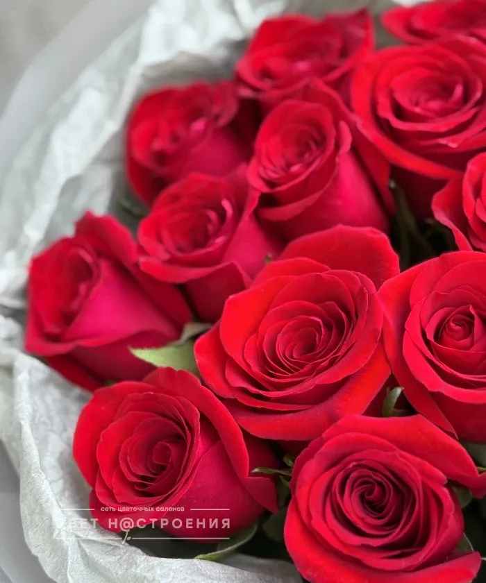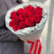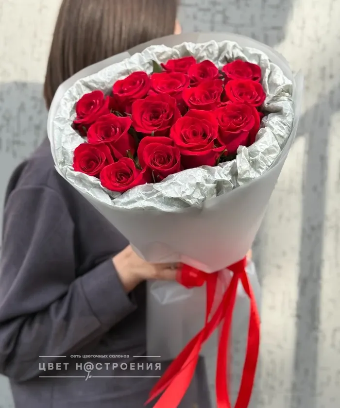 15 красных роз в упаковке