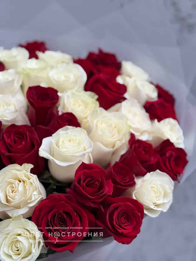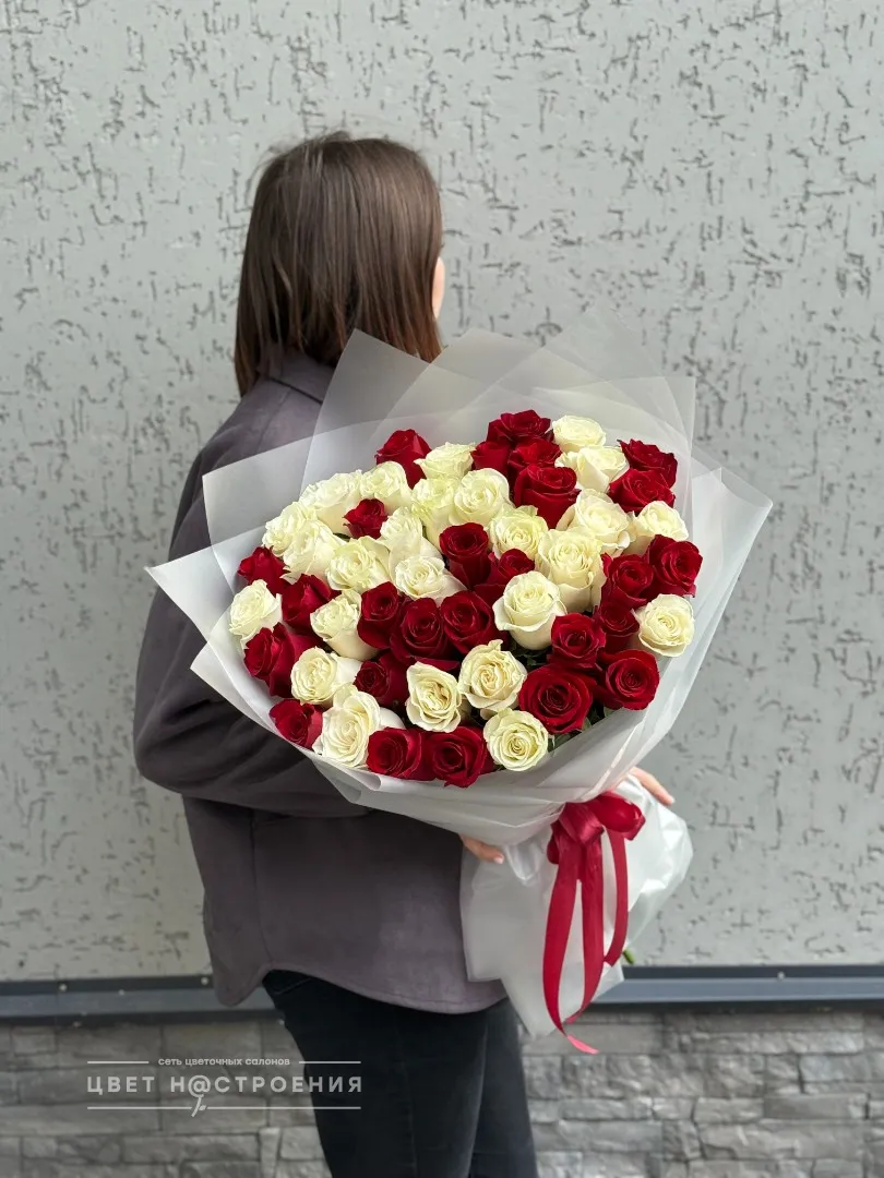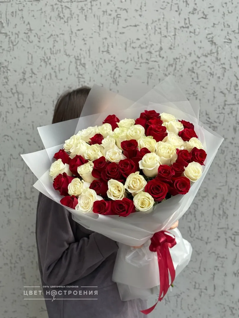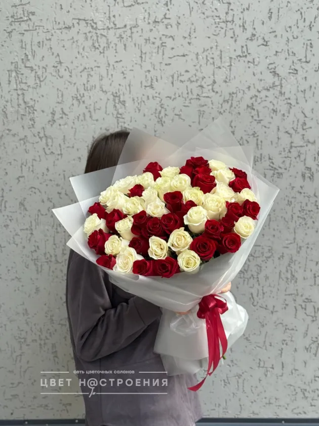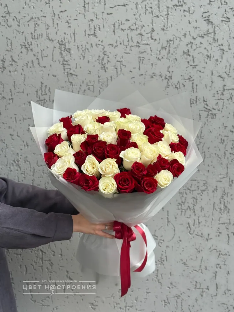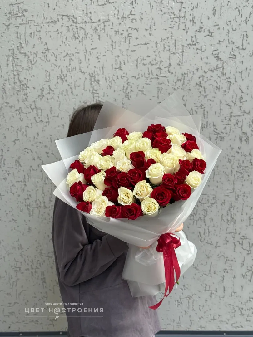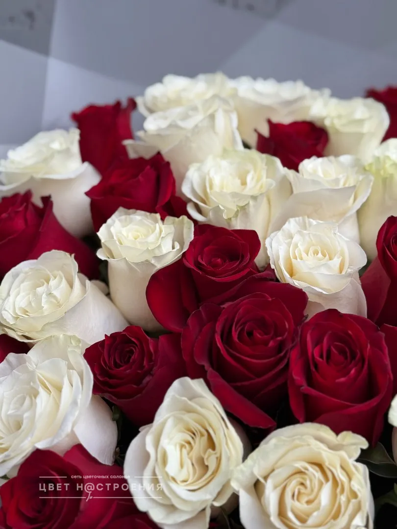 51 красно-белая роза в упаковке