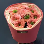 Этот букет состоит из 11 пионовидных роз Мандарин экспрешен, которые выглядят особенно ярко и насыщенно