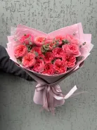 Букет привезли вовремя, проблем с доставкой не было. Цветы ароматные и свежие, букет очень красивый.