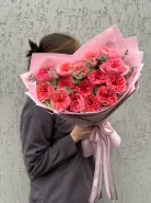 Заказывала подруге на тридцатилетие красивейший букет из кустовых пионовидных роз. Оформляла через сайт, оплачивала онлайн. Все прошло быстро. Я дольше выбирала, так как ассортимент большой, красивых праздничных букетов хватает. Когда приехала через несколько дней, то своими глазами увидела букет в пышном цвете. Простоял долго. Спасибо за честность.