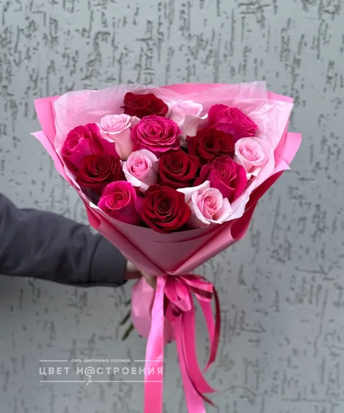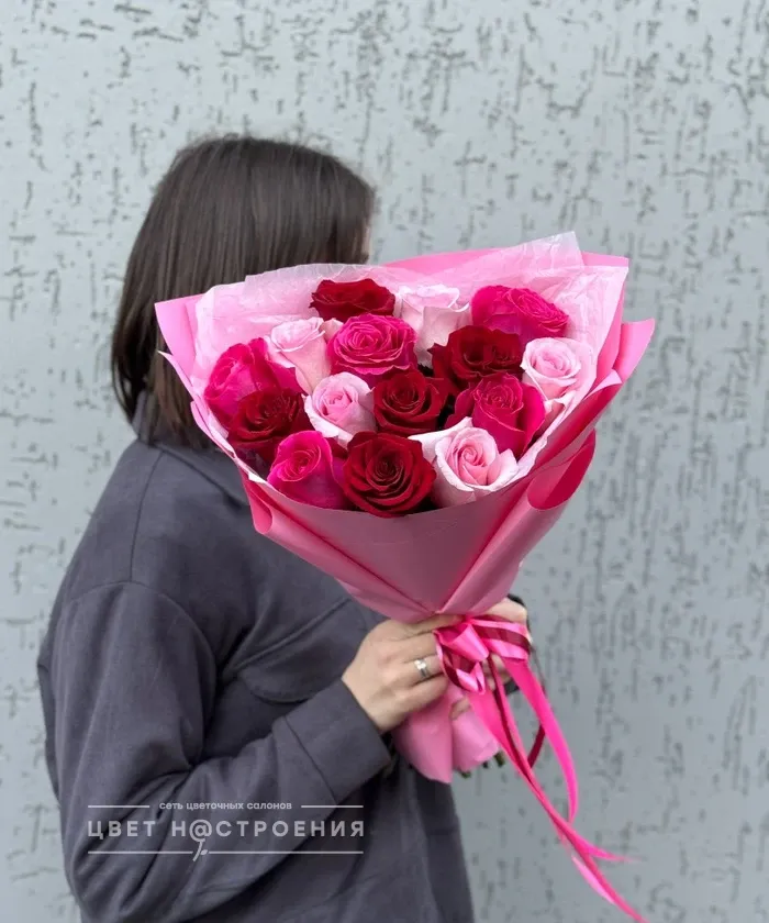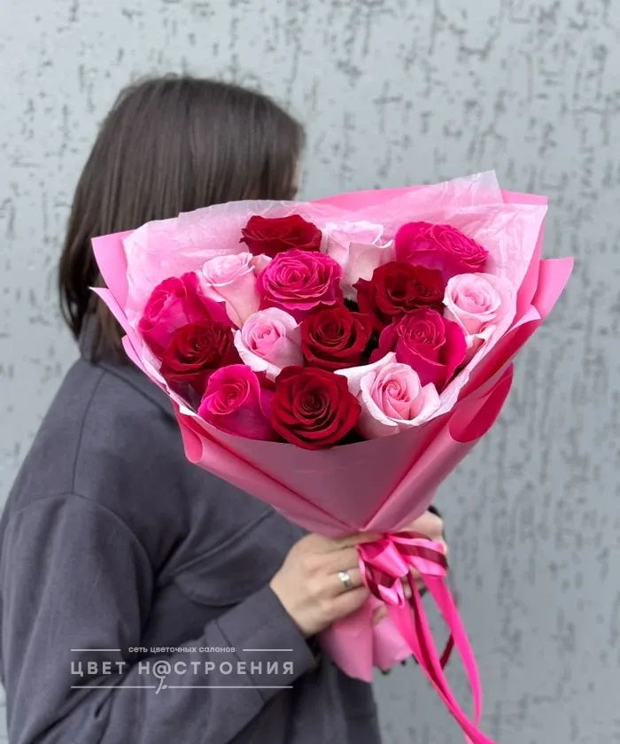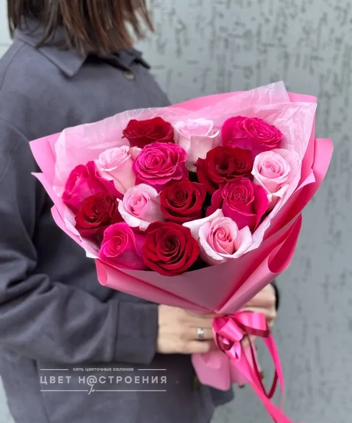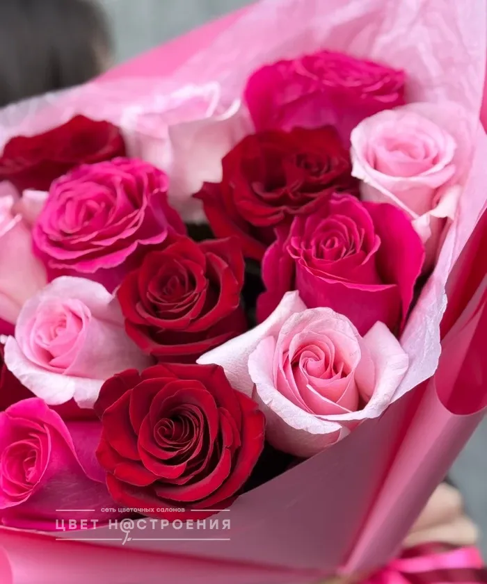 15 роз Эквадор микс в упаковке